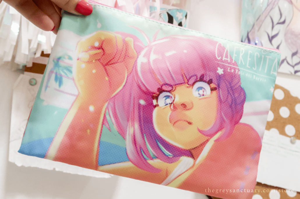 Cafr3sita and her never-ending rage with her homework. Beautiful polyester cosmetic bag with a colorful zipper and another hidden one inside the bag.